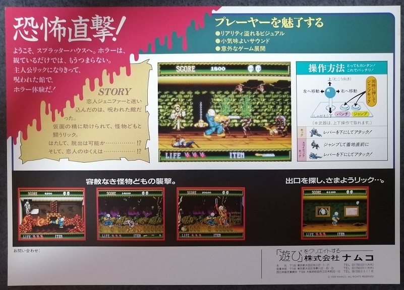 ナムコ「スプラッターハウス」のパンフレットです。